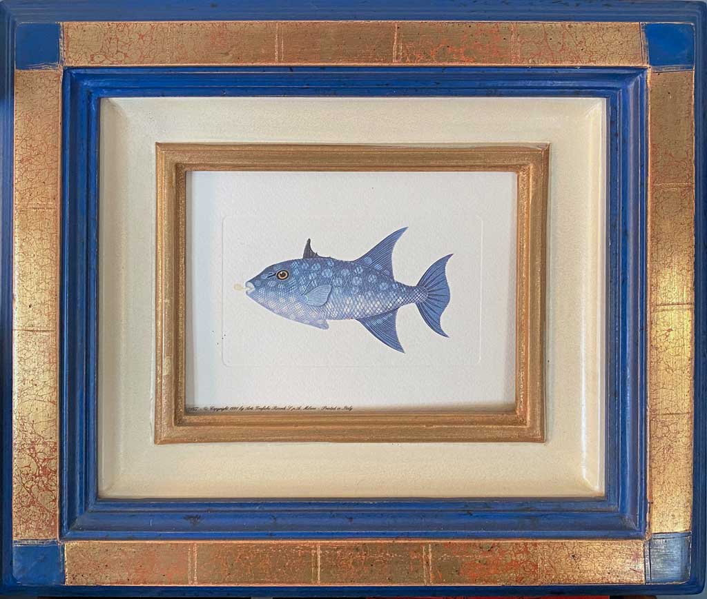 Plat vieux bleu filets or