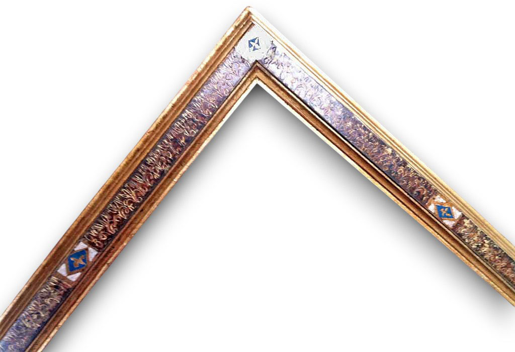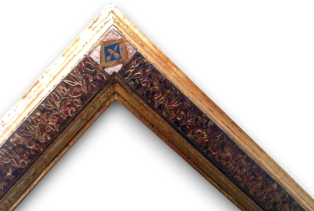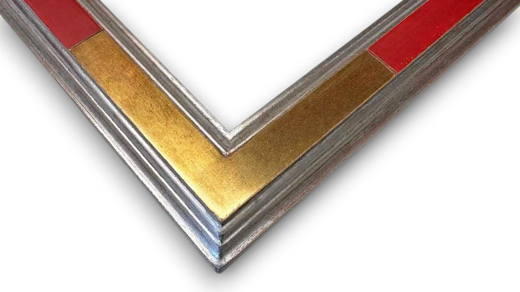 Rouge vif angle cartouche or filets argent